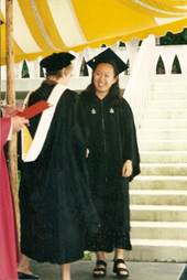 Throughout my life, it seems I have been alternately afflicted and blessed. As a student of Tae Kwon Do, I have struggled under the watchful eye of my instructor and under the expectations of being the instructor's daughter. However, more importantly, I have been blessed – endowed with an innate discipline that comes from Grandmaster Yu's roots. Through training, I have developed that discipline, which has allowed me to accomplish my goals both on and off the mat.