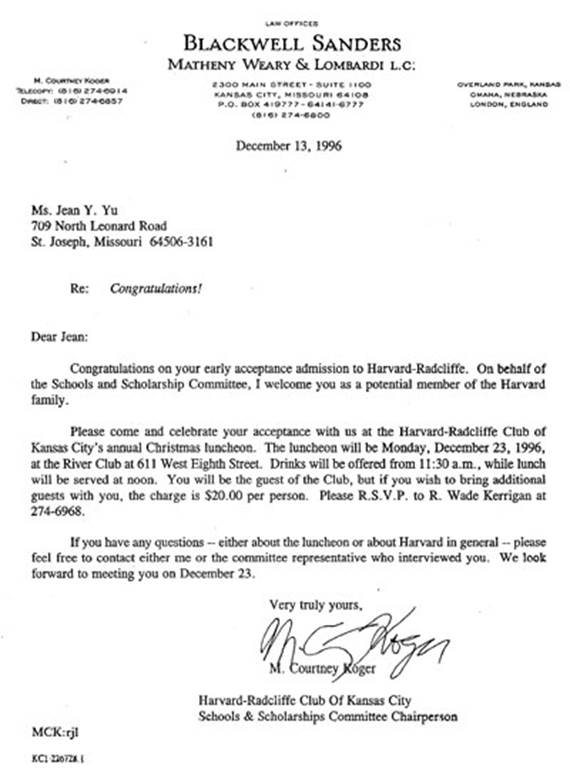 2 – Letter of Acceptance Admission to Harvard