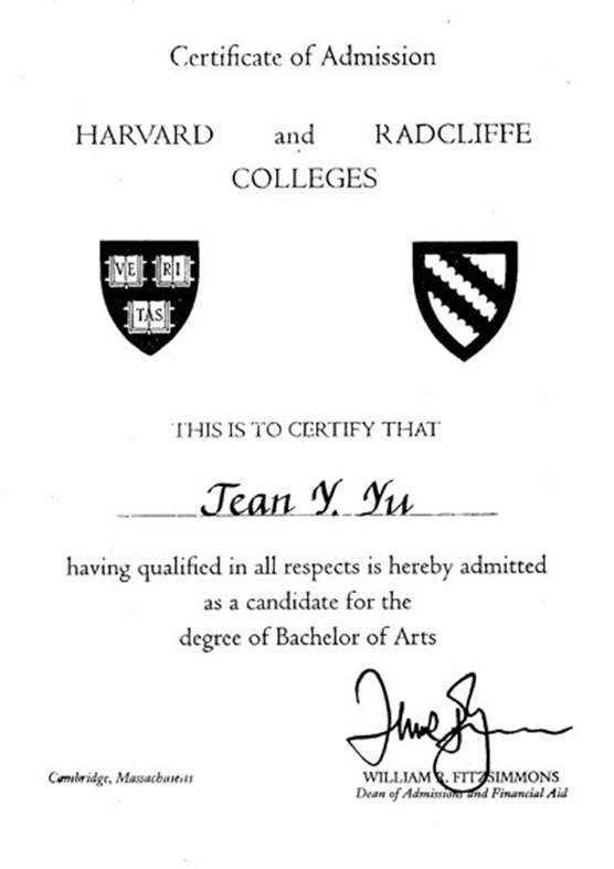 3 – Certificate of Admission Harvard