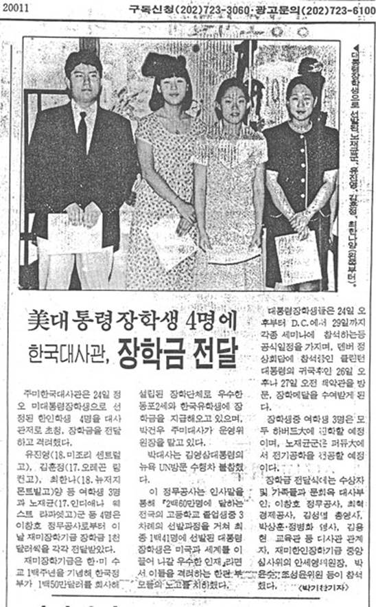 5 – 한국대사관 초청 – 장학금 전달 (미국 대통령상 수상자)